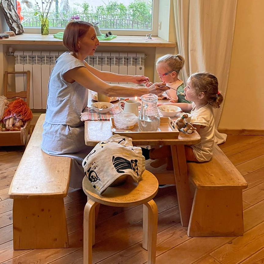 Сейчас на Языковском переулке постоянно работает моя детская группа. В работе я использую элементы Вальдорфской педагогики. Мы с детками играем, рукодельничаем, кушаем, гуляем, группа разновозрастная с трёх до шести лет.