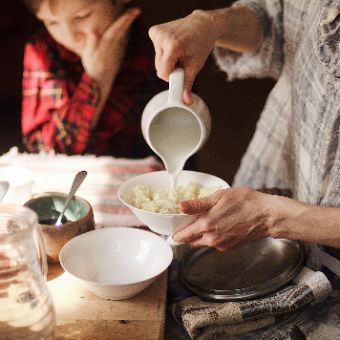 Экологическая домашняя еда. Только натуральные продукты проверенного качества. Горячая каша с добавками (мед, варенье, курага, изюм), бутерброды с маслом, молоко, вода.